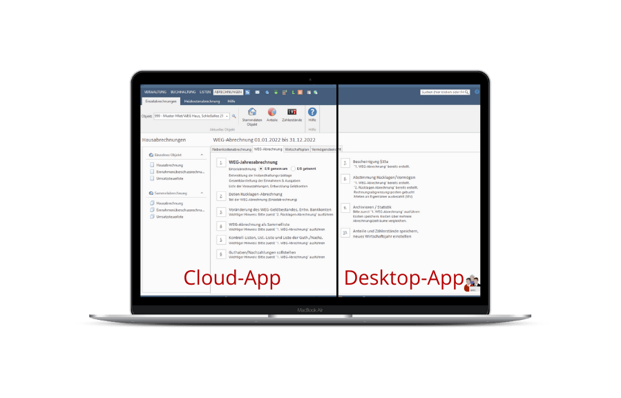 - Auf allen Geräten - im gewohnten Design: Die Cloud-App enthält alle Funktionen der Win-CASA Software, im gewohnten Erscheinungsbild einer Desktop-Applikation.